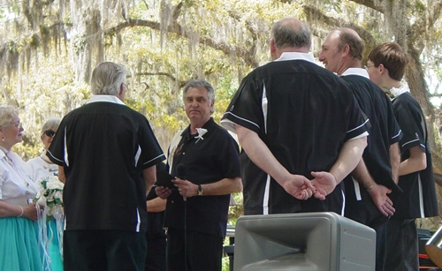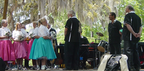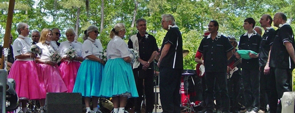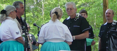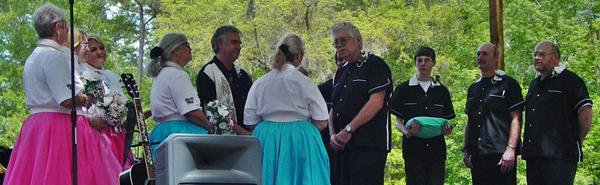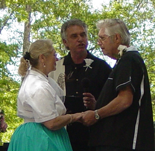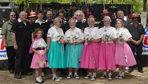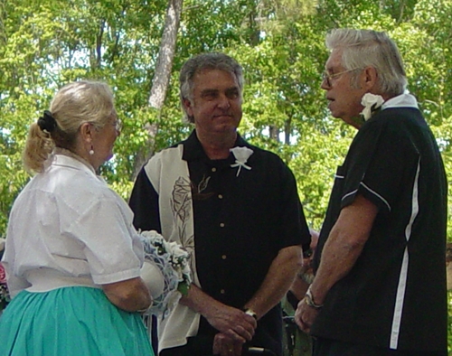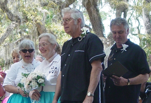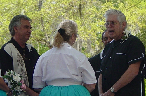 Many of these pictures were taken at various Dixieland Cruiser car shows and Christmas parties while Gene performed with the T-Birds and Jean sang as a Pink Lady. They were married on stage in front of the annual car show participants. It took a few minutes to convince the crowd that this was a real wedding. Pastor Leonard Daugherty, a club member, married them.