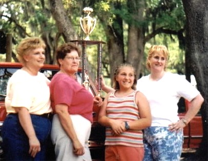 Dottie's daughter expressed her pride and thanks to the Club for honoring her dad .... Dottie and her girls posed with the 1st trophy to be given in Wilbert's name ...